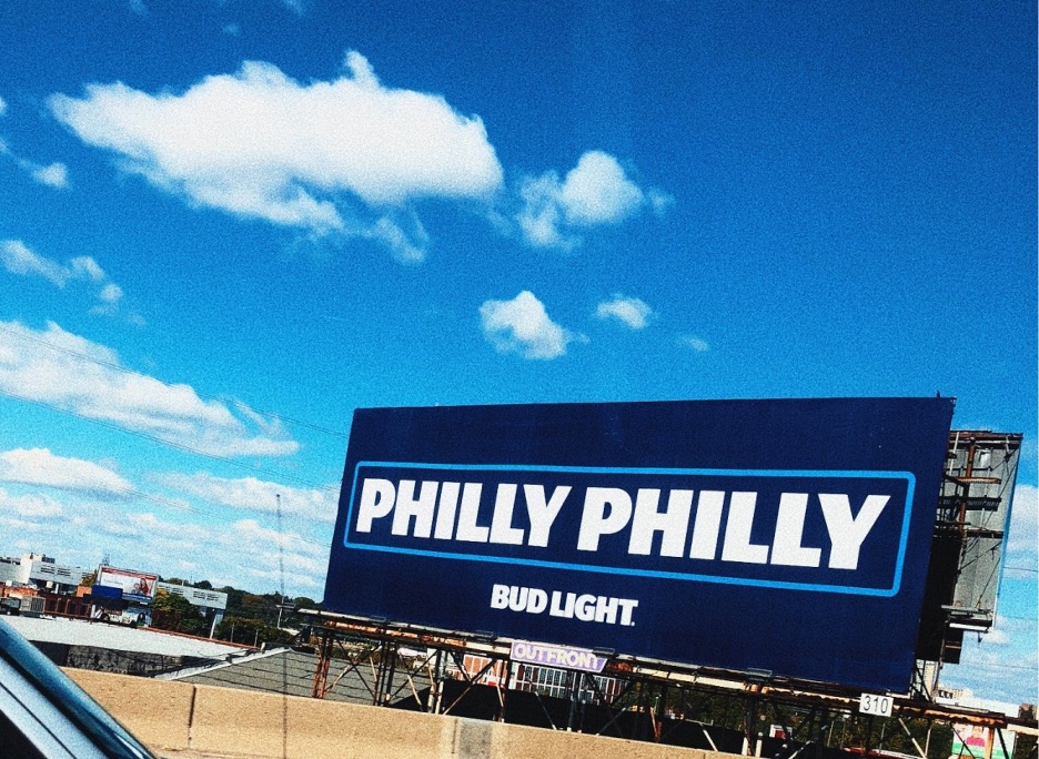 One example of effective context in out-of-home advertising is the Bud Light billboard that reads “Philly Philly” in bold white letters on a navy background with a light blue rectangle around it, typical of Bud Light branding. It plays on the phrase “dilly dilly,” which is associated with Bud Light but adapts it to the target audience of Philadelphia by swapping “dilly” for “Philly.” Doing so shows Philadelphia residents that Bud Light cares about them. It’s particularly applicable because Philadelphia is home to numerous major sports teams, including the Eagles football team, the Flyers hockey team, and the Philadelphia Phillies baseball team. After all, what are American sports without beer?