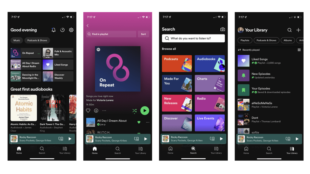 Home, playlist, search, and ‘Your Library’