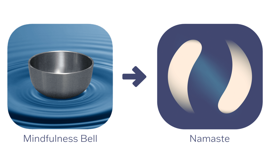 I decided to redesign the app logo because while the original logo makes sense to people familiar with meditation and Tibetan singing bowls, it could confuse others. I also chose to rename the app to make it stand out because many meditation apps use the words “meditation,” “mindfulness,” and “timer” in their name. I chose “Namaste” as the new name because it relates to the eastern origins of meditation, a theme that will guide the app’s development.