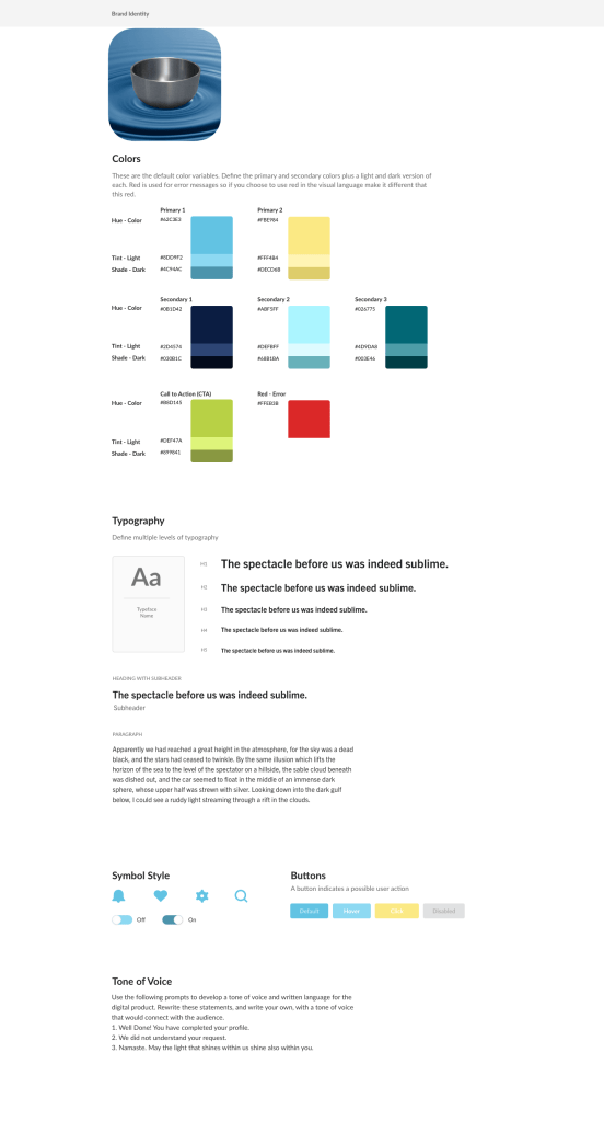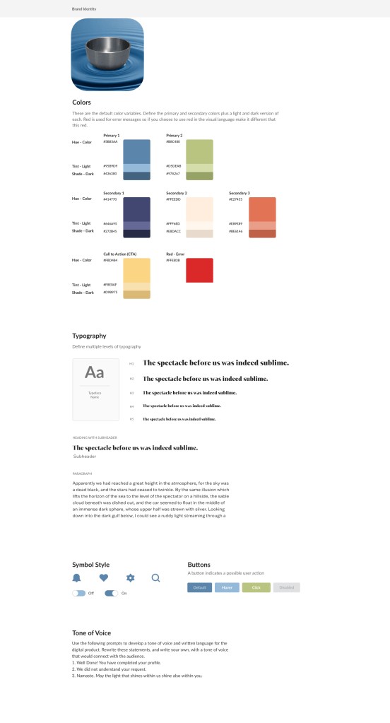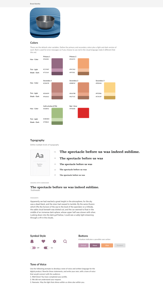 I used a similar tone of voice in the brand identity for all three redesigns. They are all based on the language of guided meditation but are variations of the same general concepts. For example, when a typical popup might say “thank you,” Meditation Bell might say, “Namaste,” “may the light shine brightly within us both,” or “may tranquility be with you.”