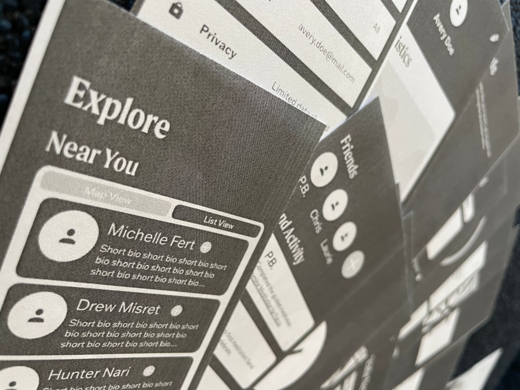 I made six wireframes based on six user flows. Once the wireframes were complete, I printed them to scale and cut them out. I then recruited two people to be user testers for me. They knew nothing about the app when they began and have no or limited knowledge about design or user testing.